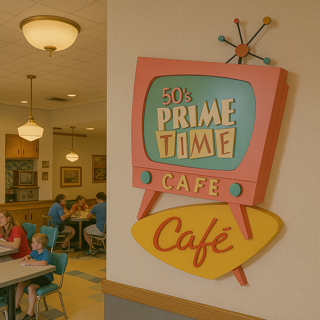 At 50’s Prime Time Café at Disney’s Hollywood Studios, Mom and the whole family dish out heaping helpings of home-style cooking and loving lectures to match.